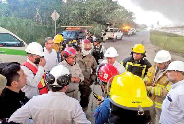 El personal de Seguridad Física de Pemex inició un trabajo coordinado con bomberos de la región para controlar el fuego, sin embargo, los obreros aseguraron que ya no había nada qué hacer, aunque sí alertaron por los gases que produce la quema del combustible, pues genera ácido sulfhídrico o sulfuro de hidrógeno, el cual es más denso que el aire, es incoloro, odorífero y muy tóxico e inflamable.