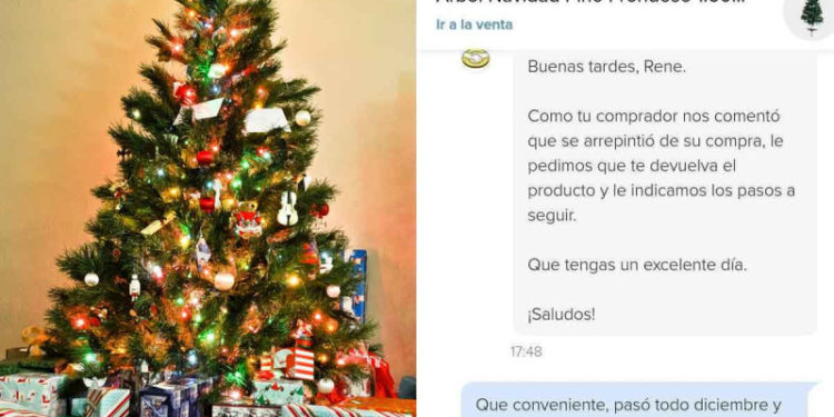 Lo curioso del caso es que se trataba precisamente de un árbol de Navidad, cuyo comprador decidió aprovechar las políticas de devolución de Mercado Libre y una vez pasado el tiempo requerido, devolvió el pino tras haberlo usado, por lo que ahora el vendedor tendrá que reembolsar su dinero.