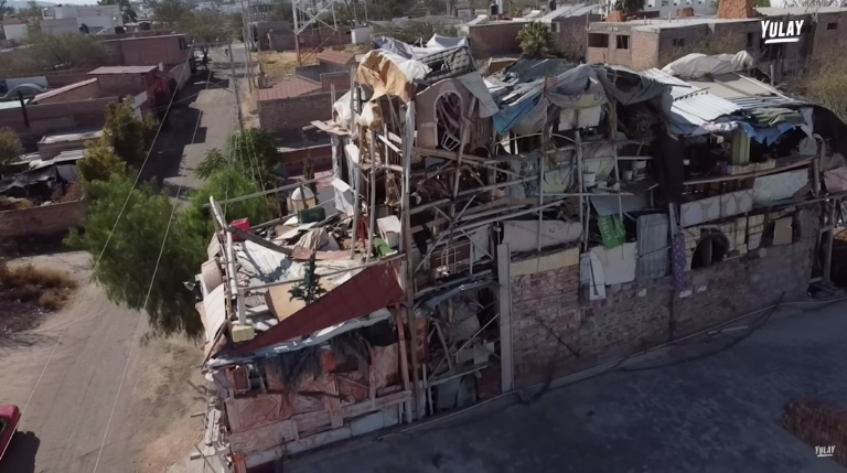 Juan Carlos Maldonado Romo un albañil de Aguascalientes, tiene más de 5 años que ha construido poco a poco con maderas, laminas, tubos y cualquier material reciclable una casa de 4 pisos de altura, esto tras su regreso de los Estados Unidos donde trabajo en la construcción, pero tras su separación de su familia no le quedó más que regresar y construir su patrimonio con basura.