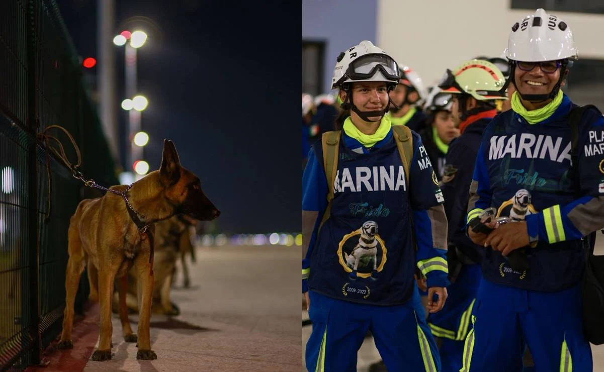 Cabe destacar que los elementos de la Marina que viajarán esta noche rumbo a Turquía, a bordo de un avión de la Fuerza Aérea, portan casacas con la imagen de Frida, la perrita rescatista.