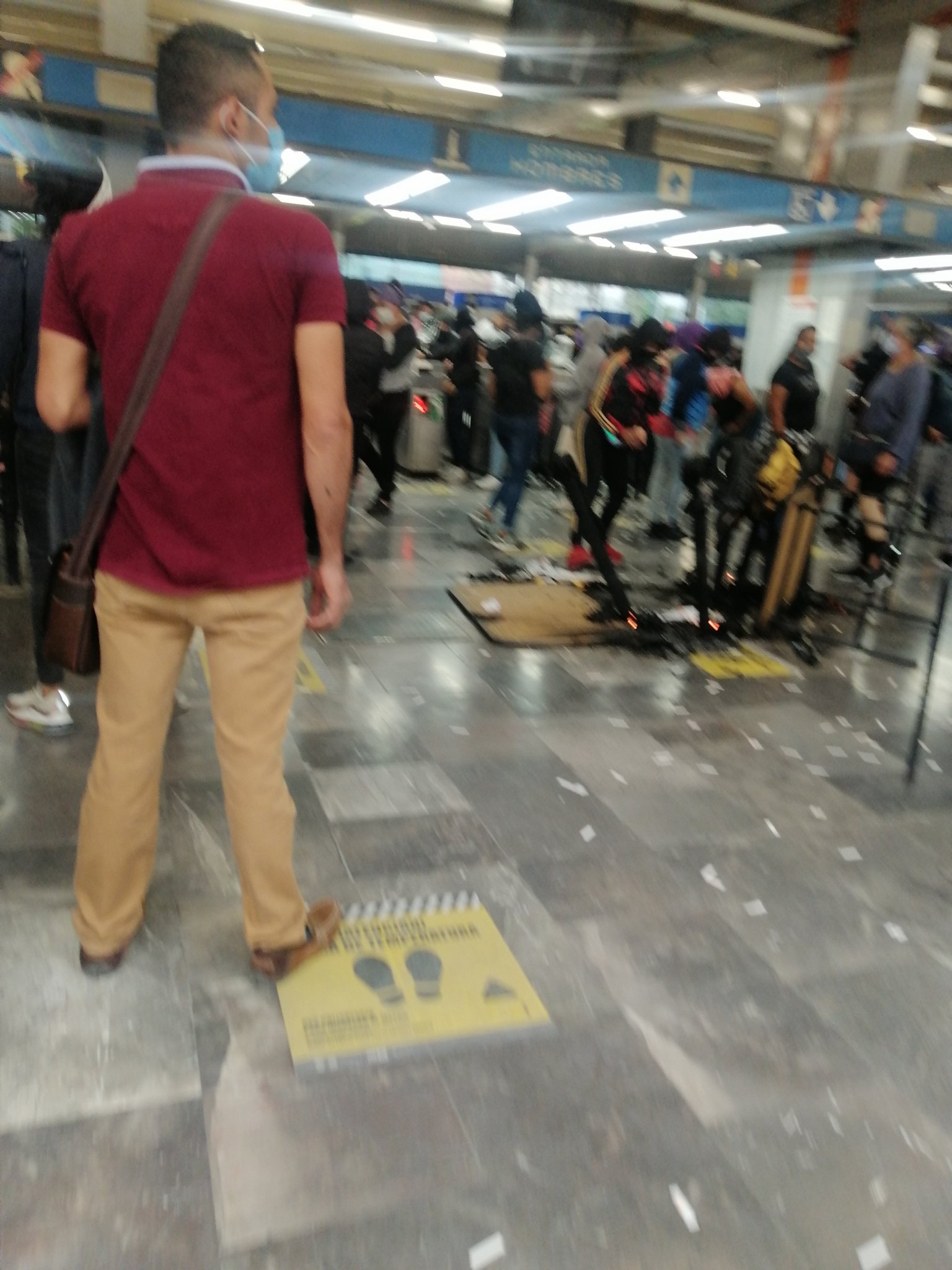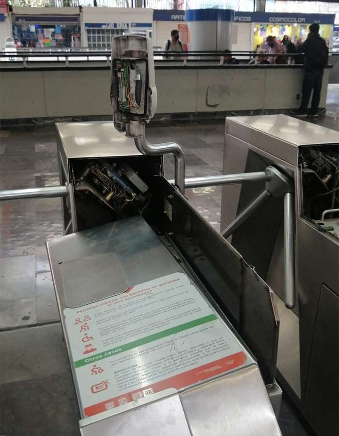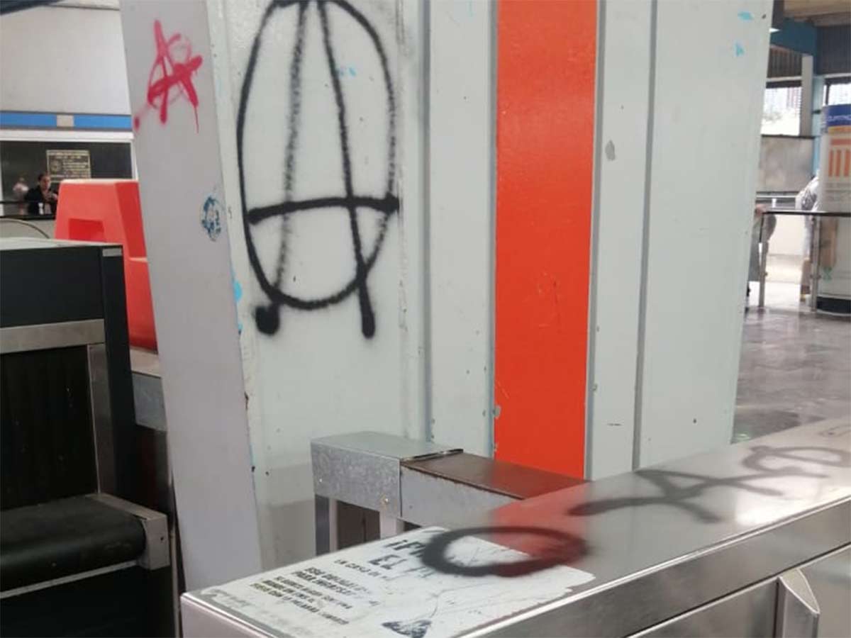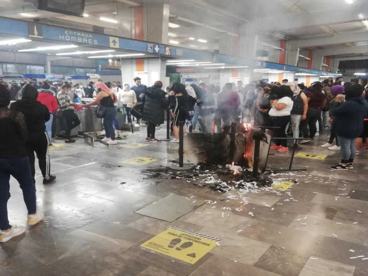 La protesta fue en contra de lo que llamaron la militarización del transporte, por tal motivo causaron destrozos en los torniquetes de acceso a la estación, además de realizar pintas.