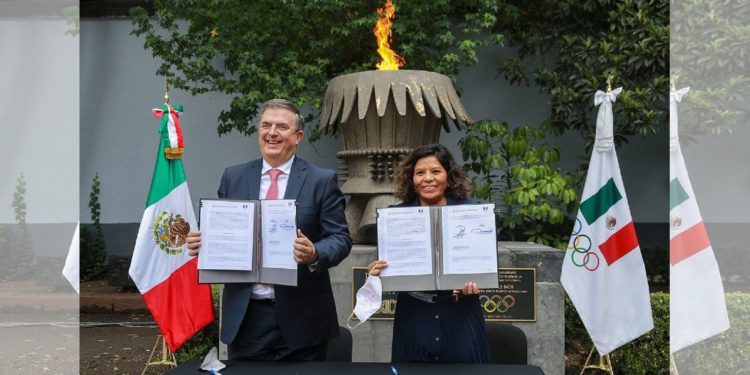 El secretario de Relaciones Exteriores, Marcelo Ebrard y María José Alcalá, presidenta del Comité Olímpico Mexicano, dieron a conocer la postulación de México a los Juegos Olímpicos del 2036.