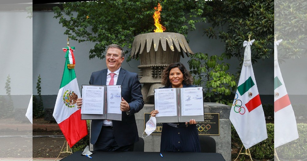 El secretario de Relaciones Exteriores, Marcelo Ebrard y María José Alcalá, presidenta del Comité Olímpico Mexicano, dieron a conocer la postulación de México a los Juegos Olímpicos del 2036.