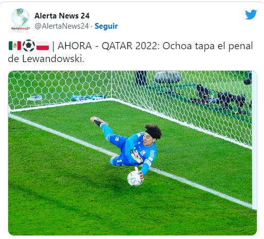 Héctor Moreno le comete penal a Lewandowski, una infracción discutida, por un forcejeo mutuo. A partir de una decisión del VAR, se cobra la pena máxima. El artillero apunta y dispara sin convicción: Ochoa contiene el disparo.