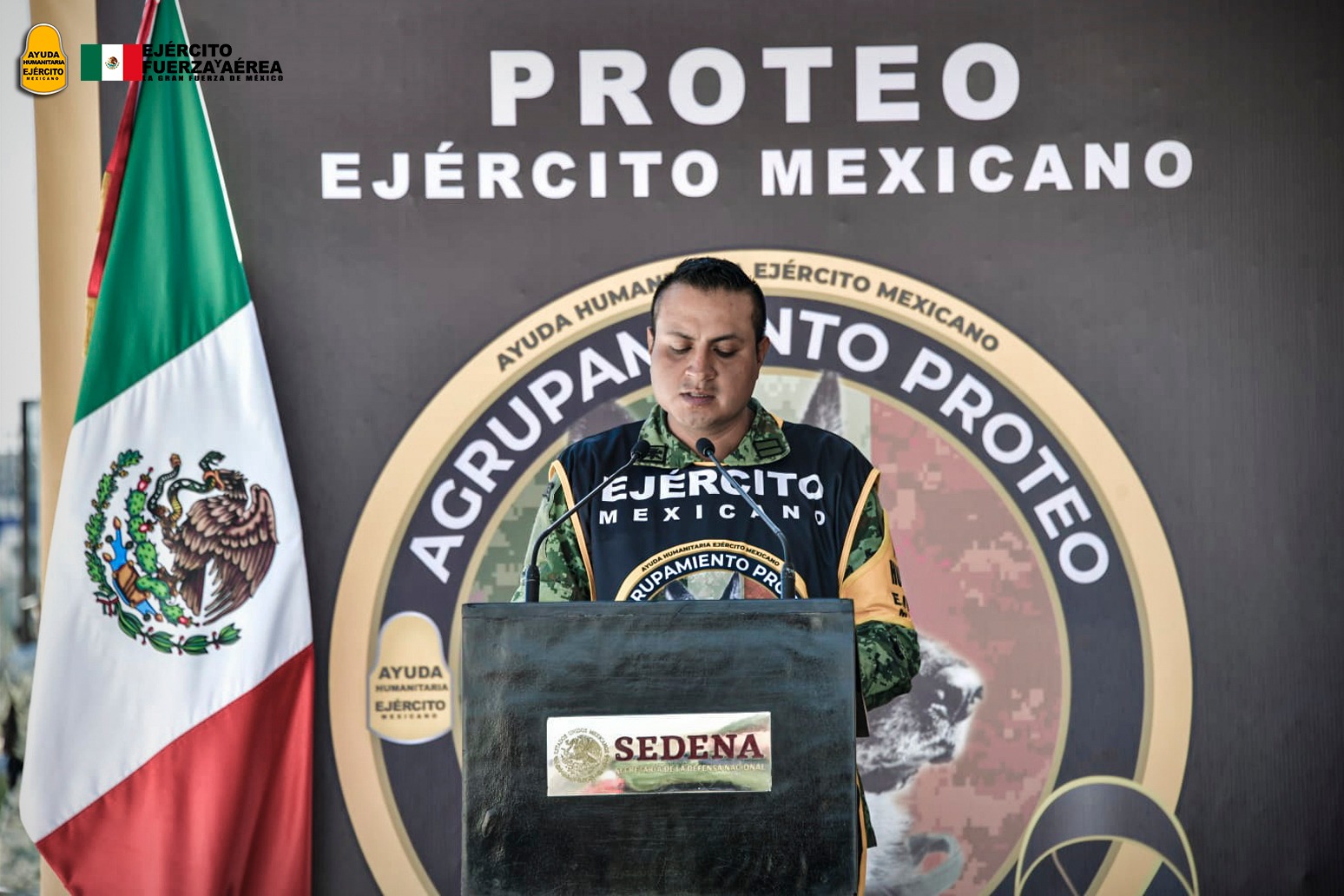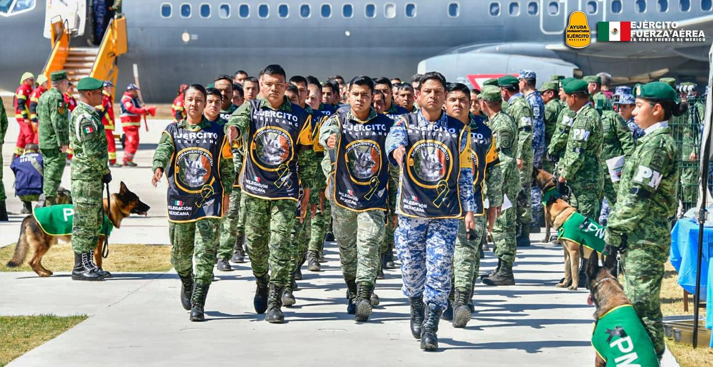 En punto de las 13:20 horas, arribó el avión Boeing 737-800, matricula 3528 de la Fuerza Aérea Mexicana, con 93 elementos de la Secretaria de la Defensa Nacional, 37 de la Secretaria de Marina Nacional, cinco personas de la Secretaria de Relaciones Exteriores, 15 de la Cruz Roja, 15 binomios caninos y los restos de Proteo.