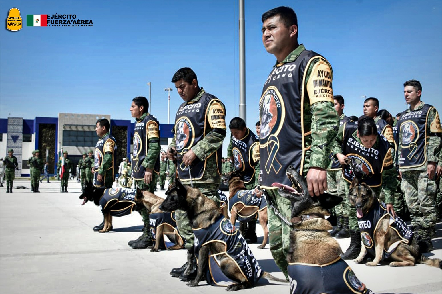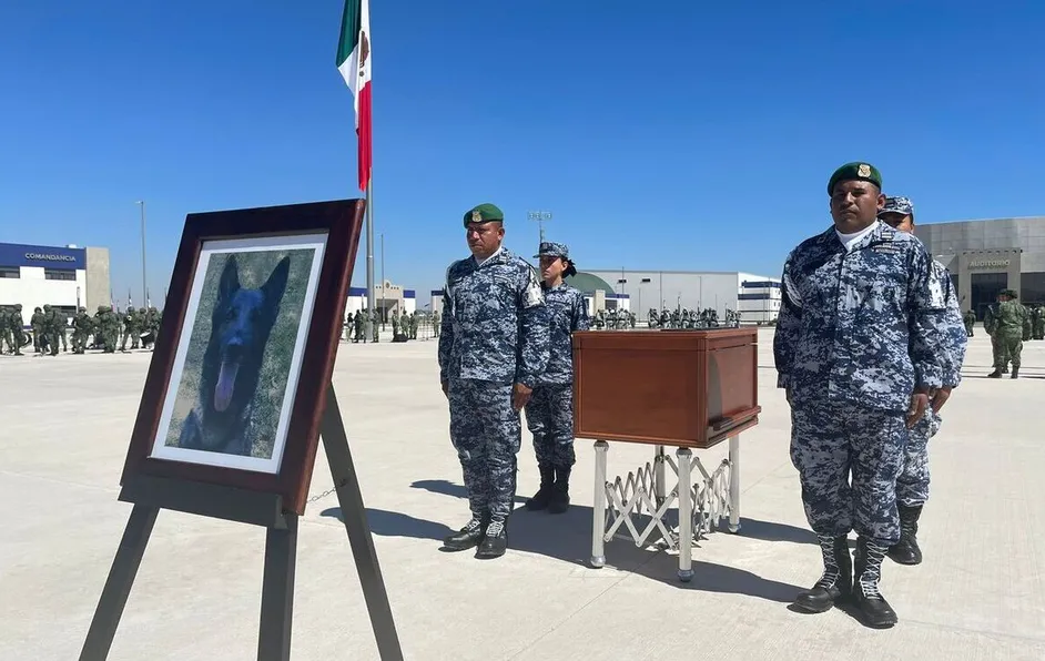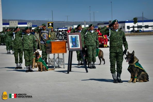 Durante la ceremonia de honor, cinco elementos de la Secretaria de la Defensa Nacional, encabezados por su manejador, montaron una guardia honor en el féretro de Proteo, para finalmente ser despedido por una valla de honor de 84 binomios caninos, quienes ladraron al unísono.