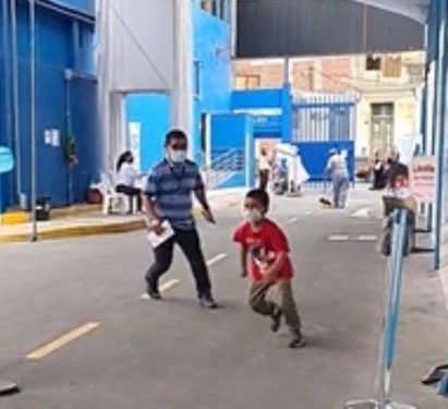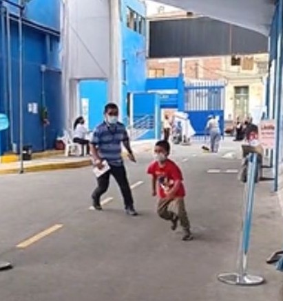 El pequeño junto a su padre había acudido a vacunarse contra el covid 19, sin embargo poco antes del turno del menor, el miedo se apoderó de él y decidió emprender la huida.