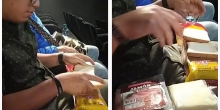 En los cines venden muchas botanas y dulces, pero a veces no es suficiente para calmar el antojo; no obstante, aunque no está permitido, hay quienes burlan la seguridad hasta para meter a la sala jamón, queso, pan, para hacer y degustar unos deliciosos sándwiches.