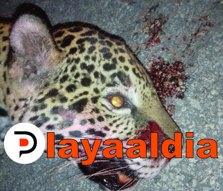 Esta mañana un ejemplar de jaguar, especie en peligro de extinción. fue atropellado en la carretera federal 307, entre el hotel Nickelodeon Riviera Maya y Hotel Valentín Imperial.