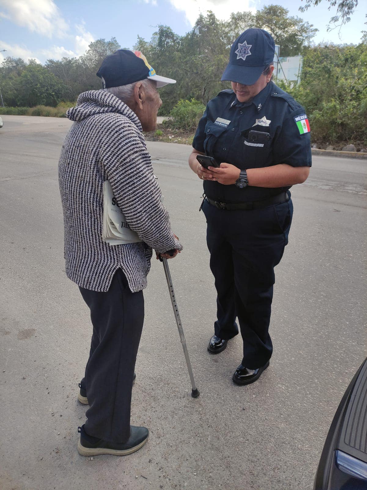 Elementos de la Policía Municipal de Solidaridad, en un recorrido por la ciudad, vieron deambulando por las avenidas Paseo del Mayab e Hipocampo al señor Rafael Roque Mendez de 92 años, quien es originario de Zimatlán, Oaxaca.