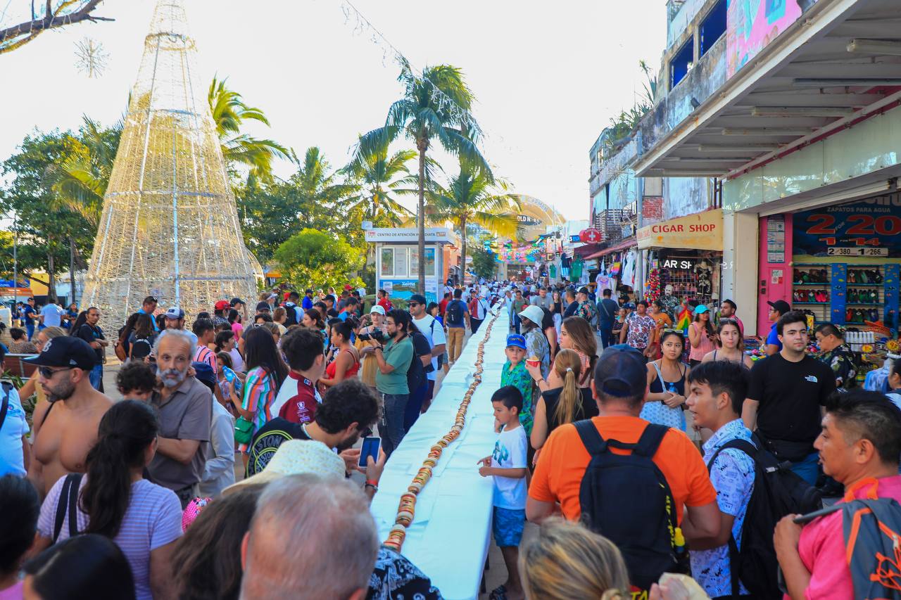 Previo a esta actividad, Lili Campos compartió con locales y turistas que se encontraban en la Quinta Avenida, la tradicional Rosca de Reyes de cerca de 400 metros, realizada por alumnos de la Universidad Vizcaya para después celebrar el día de Reyes, con vecinos de la CTM, con quienes se comprometió a dar los tamales el 2 de febrero, día de la Candelaria.
