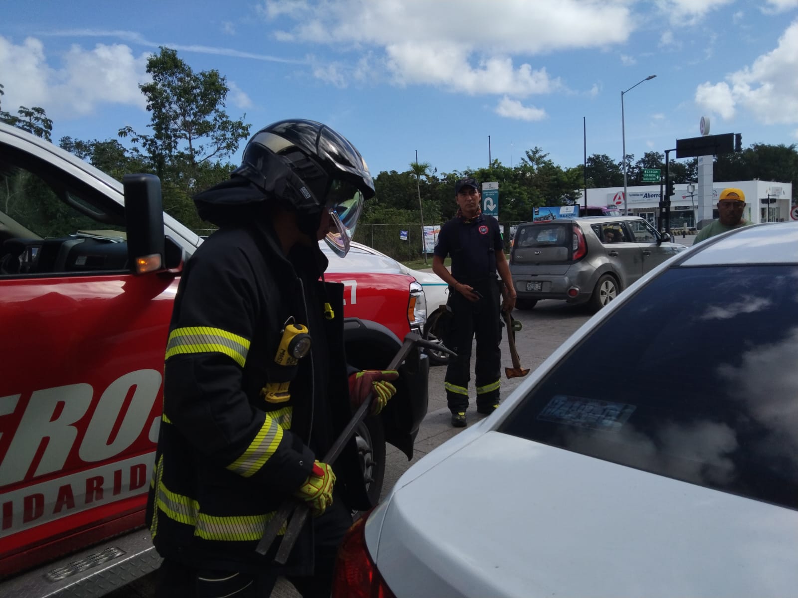 Los paramédicos de la Dirección de Bomberos se pueden identificar por su chaleco fluorescente y su distinguido casco azul de bombero.