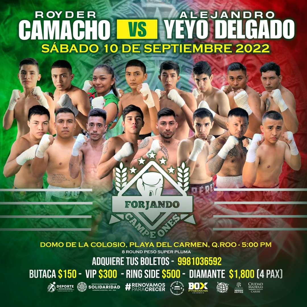 El gobierno municipal impulsa a boxeadores locales con la velada “Viva Playa del Carmen”, a celebrarse el próximo 10 de septiembre en el domo de la Unidad Deportiva Luis Donaldo Colosio y estelarizada por el playense Royder “Magdaleno” Camacho enfrentando al campechano Alejandro “Yeyo” Delgado, en peso súper ligero a ocho rounds, pero dejaron fuera a las mujeres porque la única que había se quedó sin rival al estar lesionada.