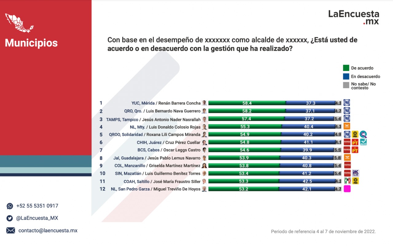 Cabe señalar que esta métrica que tiene como finalidad evidenciar la percepción que los ciudadanos tienen acerca de sus gobernantes y sugestión, rankea a los 50 gobernantes mejores calificados de todo México.