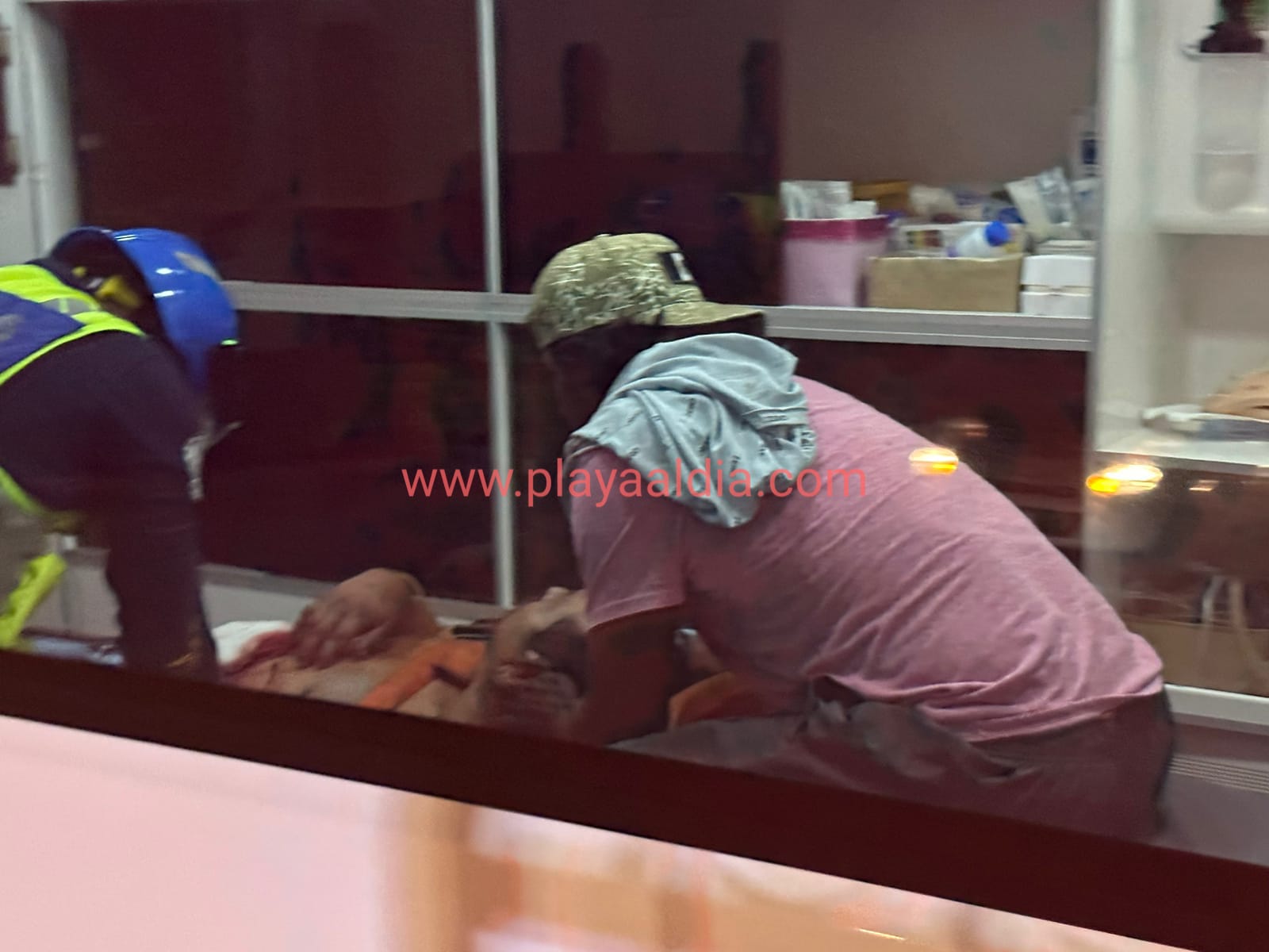 El herido, quien presuntamente presentaba una fuerte lesión cercana al estómago, en la que incluso habría exposición de viseras; fue trasladado por una ambulancia al hospital general de Playa del Carmen.