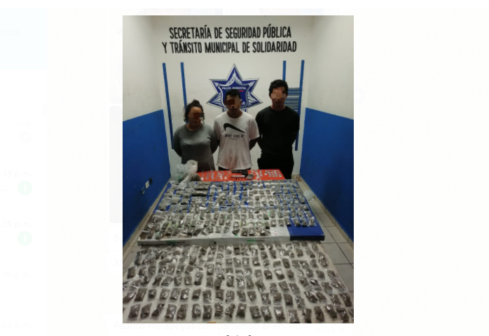 Duro golpe al narcomenudeo, asegura la Secretaría de Seguridad Pública y Tránsito Municipal de Solidaridad a 3 sujetos en posesión de 398 bolsas con diversos narcóticos y un arma de fuego abastecida con 7 cartuchos, como resultado del despliegue de más elementos y unidades en los operativos diarios de vigilancia.