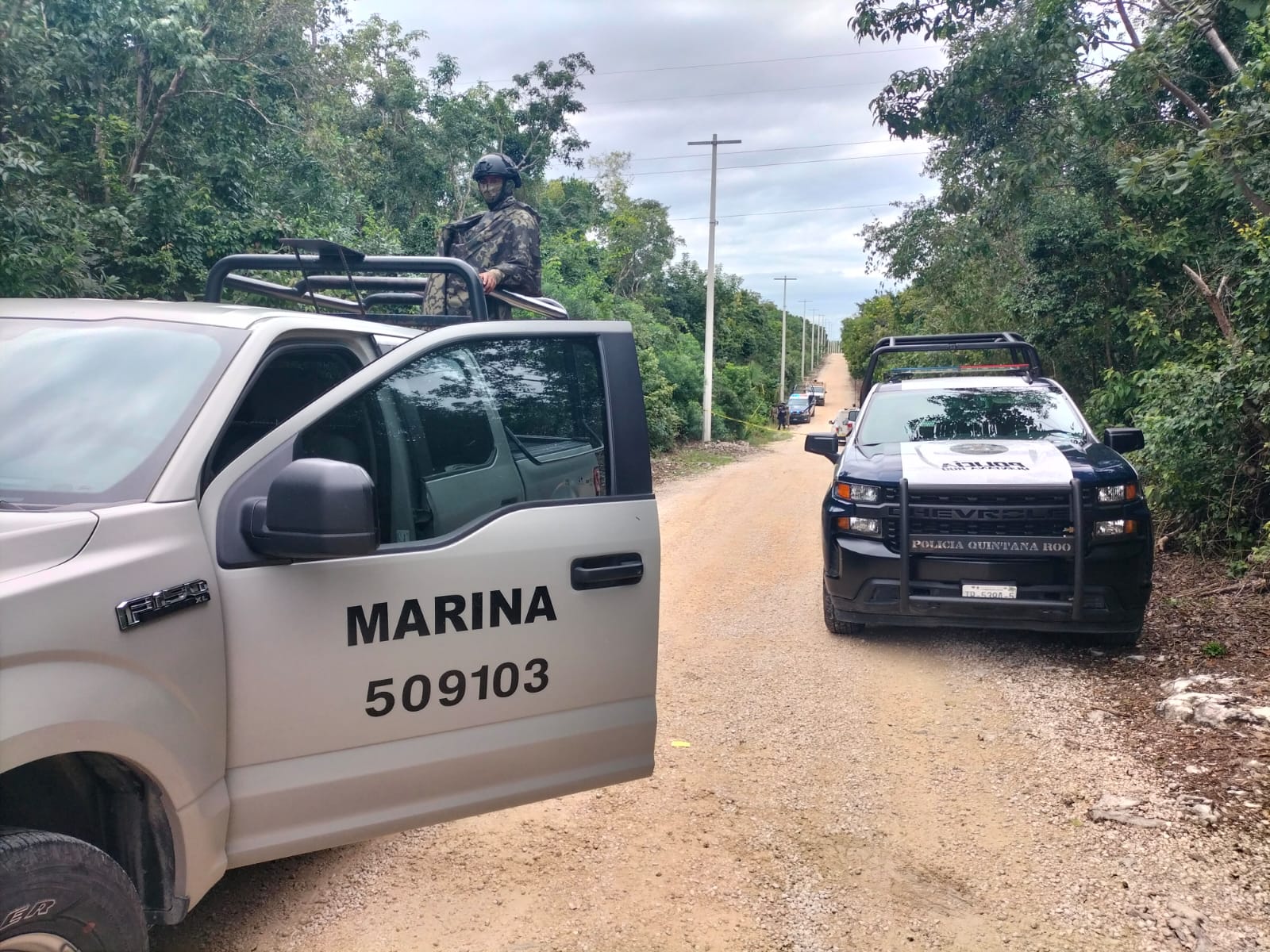 De inmediato dieron parte al número de emergencias 911 por lo que en minutos arribaron elementos de la Secretaría de Seguridad Pública de Solidaridad, así como de la Defensa Nacional y de la Policía Quintana Rooo; tras revisar el sitio los agentes confirmaron la presencia de un cuerpo putrefacto del sexo masculino.