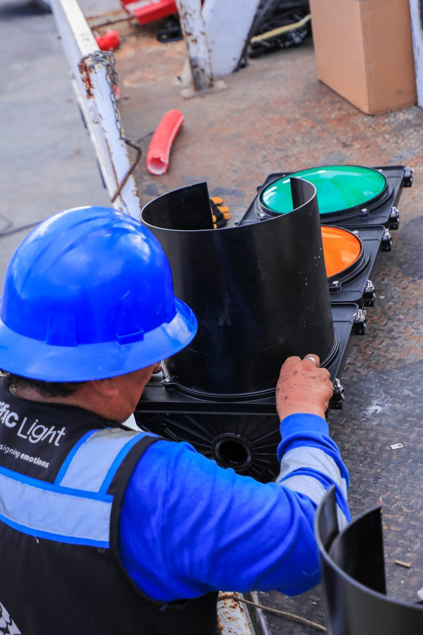 Inicia colocación de semáforos en puntos críticos de Villas del Sol