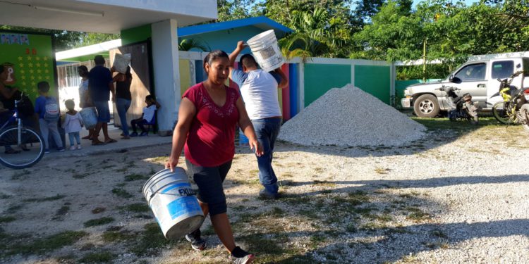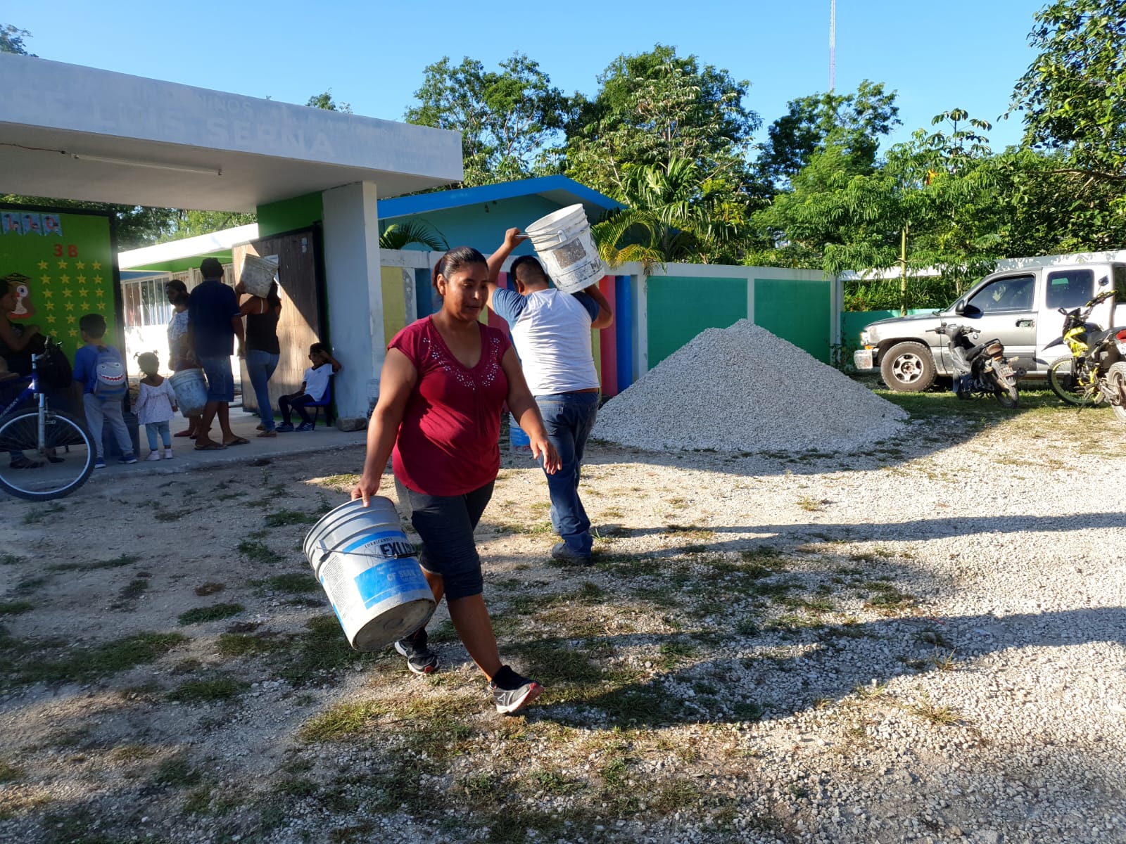 Con palas, carretillas y picos fue la inauguración de la construcción de la cancha del jardín de niños 18 de marzo de 1938, en Nuevo Noh Bec de Playa del Carmen.