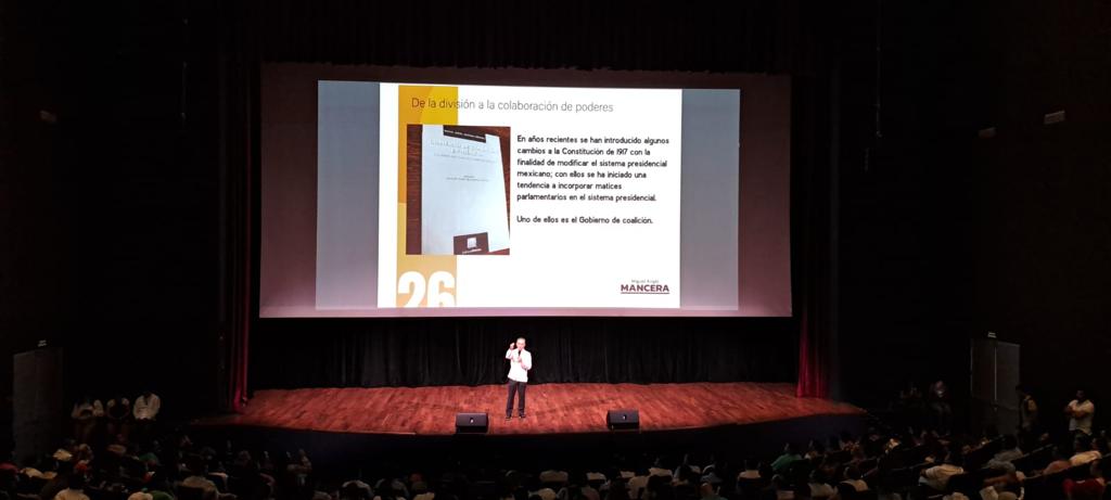 El senador Miguel Ángel Mancera Espinoza visitó Playa del Carmen para dictar la conferencia magistral “Gobiernos de Coalición”, en la que habló de la importancia de la integración de un gobierno de coalición con una agenda de trabajo que resuelva los problemas del país.