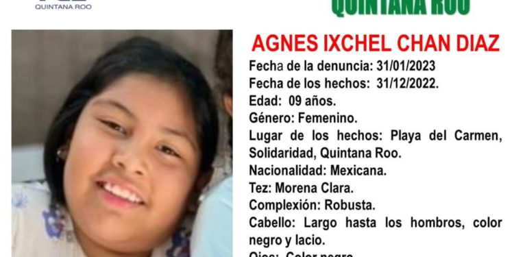 Agnes Ixchel Chan Díaz de 9 años fue vista por última vez por sus familiares el pasado 31 de enero de 2023 en Playa del Carmen, Quintana Roo.
