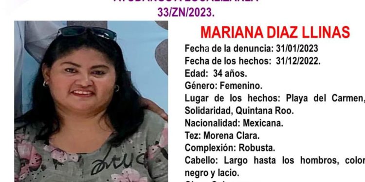 Mariana Díaz Llinas de 34 años fue visto por última vez por sus familiares el pasado 31 de diciembre 2022 en Playa del Carmen, Quintana Roo.