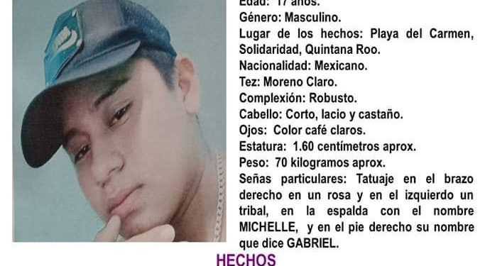 Gabriel Aguilar Hernández de 17 años fue vista por última vez por sus familiares el pasado 18 de febrero de 2023 en Playa del Carmen en Quintana Roo.
