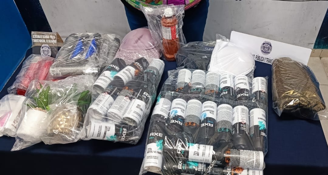 Al realizarle una revisión de seguridad, encontraron diversos productos tanto en en su bolsa como dentro de su blusa sujetados con una faja, en total llevaba consigo 47 desodorantes, 4 brasieres, 1 bote de chile y 2 macetas, sin contar con el ticket de pago correspondiente, por lo tanto, Gabriela “N” de 30 años de edad, originaria de Cancún, fue asegurada por la probable comisión flagrante del delito de robo y puesta a disposición de la Fiscalía General del Estado, para los trámites legales correspondientes.