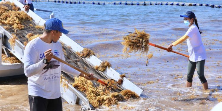 Por último, externó que por parte de la Secretaría de Marina contarán con cinco bandas en tierra, las cuales instalarán en El Recodo para retirar la planta acuática y recuperar esa zona impactada, siendo necesario cambiar su forma cóncava, lo cual propicia una mayor acumulación de sargazo. De igual manera, aseguró que en unos días más, llegaran los dos buques sargaceros de la Marina y se colocará la barrera para evitar mayor recale en la costa.