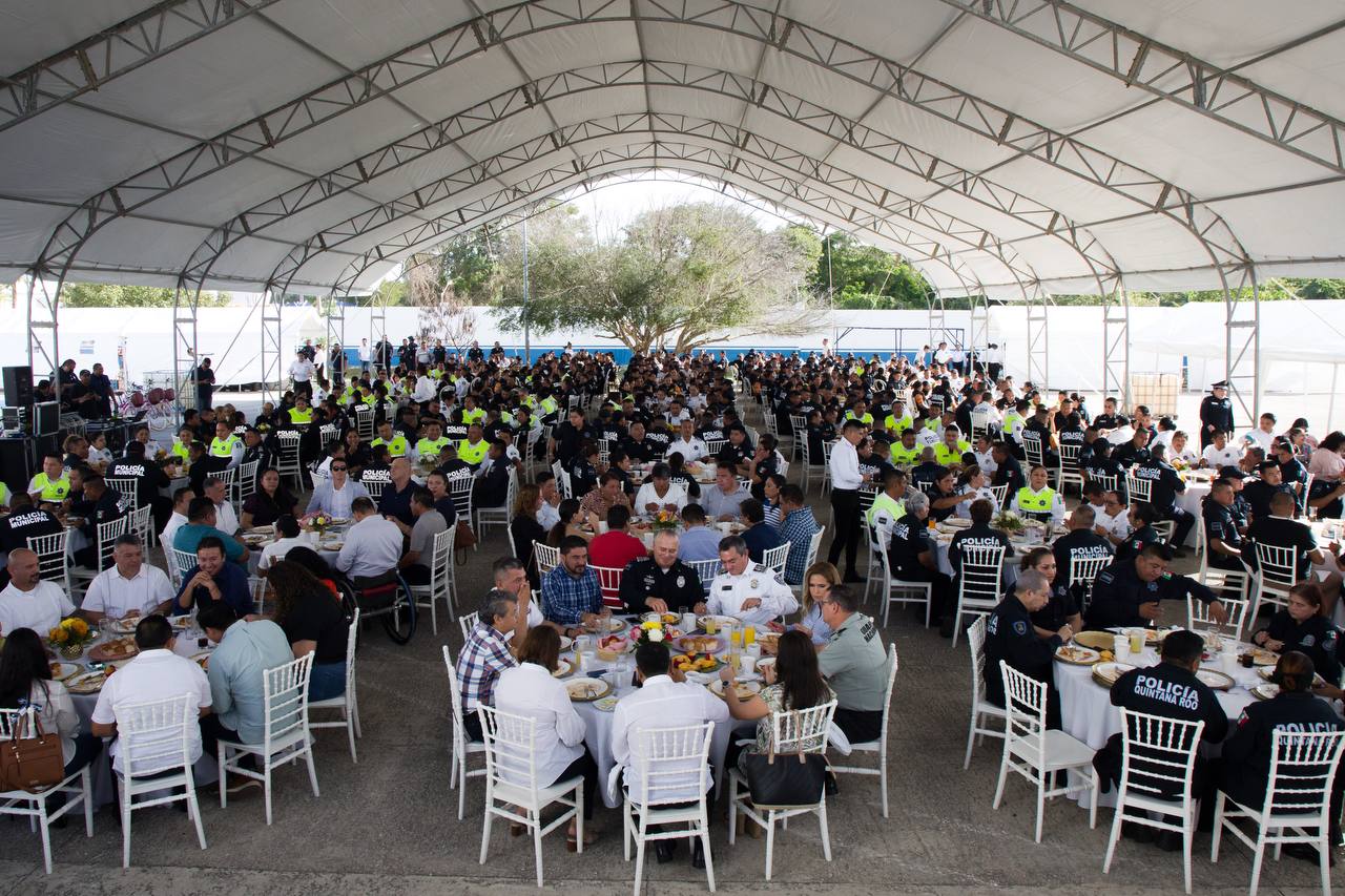 Playa del Carmen, – En el marco del Día del Policía, el gobierno de la presidenta Lili Campos celebró a los 959 elementos de la Secretaría de Seguridad Pública y Tránsito Municipal por la destacada labor que realizan a diario en favor de la seguridad de las y los solidarenses.