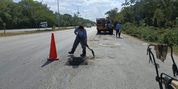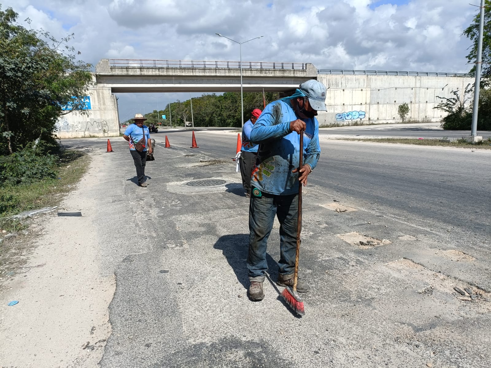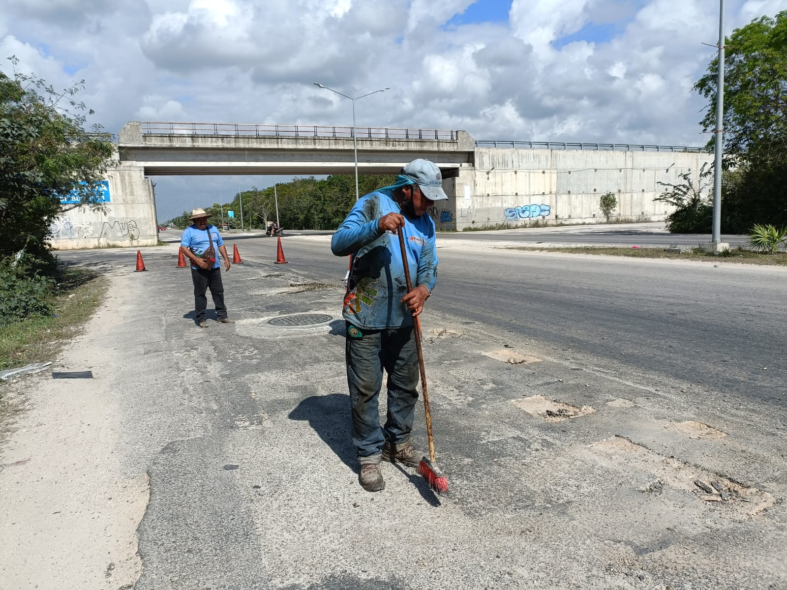 El titular de la Secretaría de Servicios Públicos Benny Millán mantiene la reparación de baches en la ciudad y está vez alrededor de los puentes sobre la prolongación de la Av. Colosio, también conocida como autopista El Tintal, que son bastantes.
