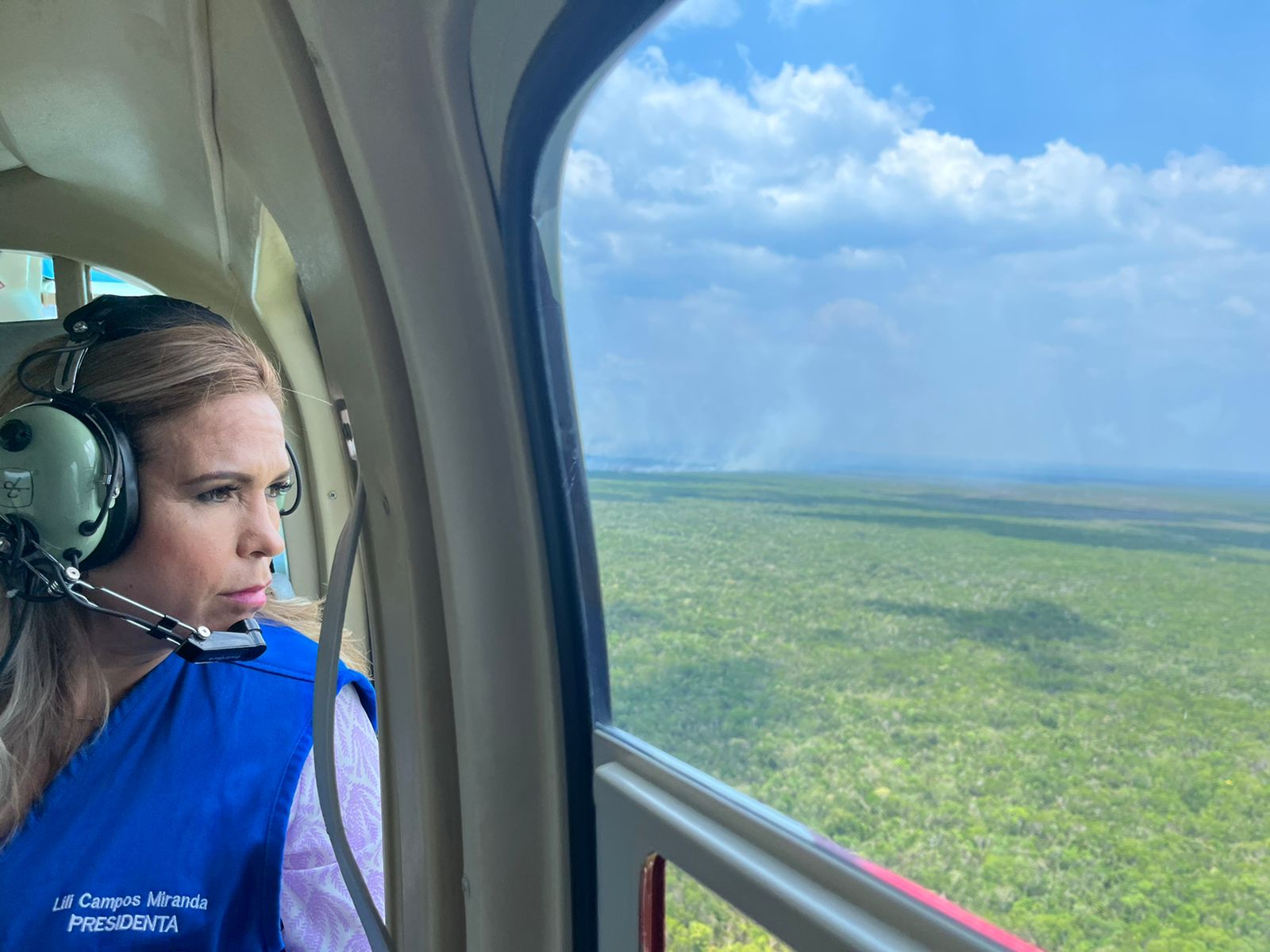 Con el objetivo de analizar la mejor estrategia para mitigar los efectos de los incendios forestales, la presidenta municipal de Solidaridad, Lili Campos Miranda, realizó el sobrevuelo de la zonas afectadas de Solidaridad en conjunto con los titulares de Protección Civil, Medio Ambiente así como el jefe de campamento de CONAFOR brigada de incendios, Carlos Pinzón y el jefe de brigadas de Kantunilkin, Josué Pascal.