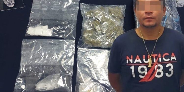 Tras atender un reporte por venta de drogas, policías de la Secretaría de Seguridad Pública y Tránsito Municipal de Solidaridad aseguraron a un sujeto en posesión de 57 posibles dosis de narcóticos.