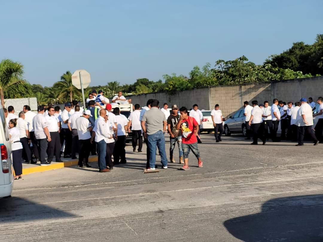 Los trabajadores del volante comenzaron a reunirse desde las 7:30 de la mañana, llegando a las afueras de este sindicato que se ubica a unos metros del parque Xcaret, al sur de Playa del Carmen, formando una cola por varios metros.