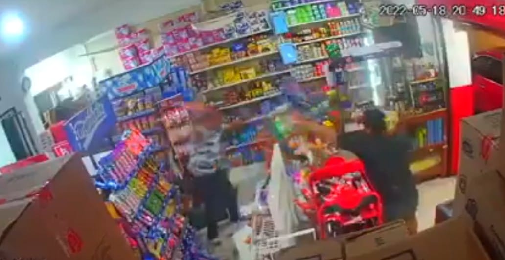 En el siguiente video que señala la fecha del 18 de mayo, podemos observar en la CAM 4, el interior de una tienda en la colonia Misión de las Flores en Playa del Carmen, Quintana Roo. Al inicio todo se ve tranquilo, con la presencia de dos clientes y la persona que atiende el negocio.