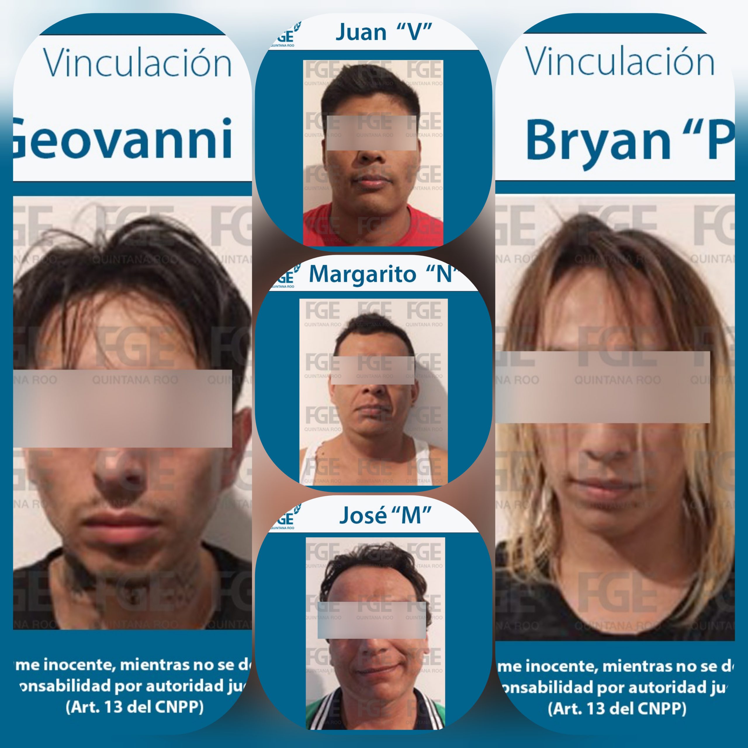 La Fiscalía General del Estado (FGE) informó que fueron vinculados a proceso, cinco sujetos más por su probable participación en el delito de encubrimiento en el caso del homicidio de cuatro trabajadores del Ayuntamiento de Solidaridad.