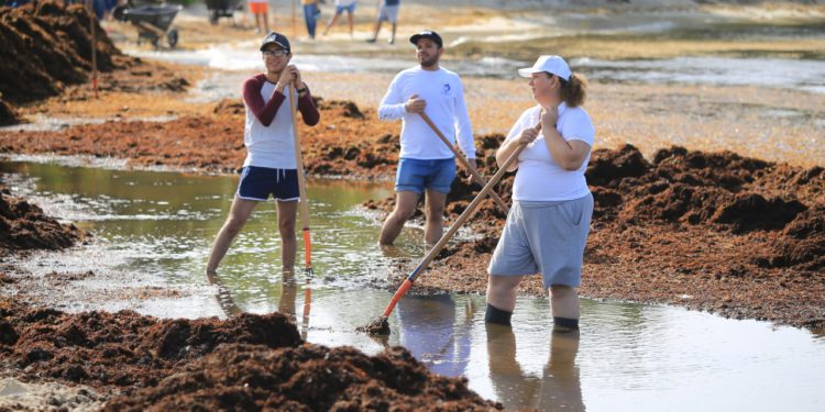 Convencidos de que se tienen que mantener las playas en óptimas condiciones, tanto para la ciudadanía local como para el turismo nacional y extranjero, voluntarios, así como trabajadores de Zofemat no bajan la guardia y continúan con la labor de la limpieza de playas y el retiro de sargazo, esto como objetivo del gobierno municipal que encabeza la presidenta municipal, Lili Campos Miranda.