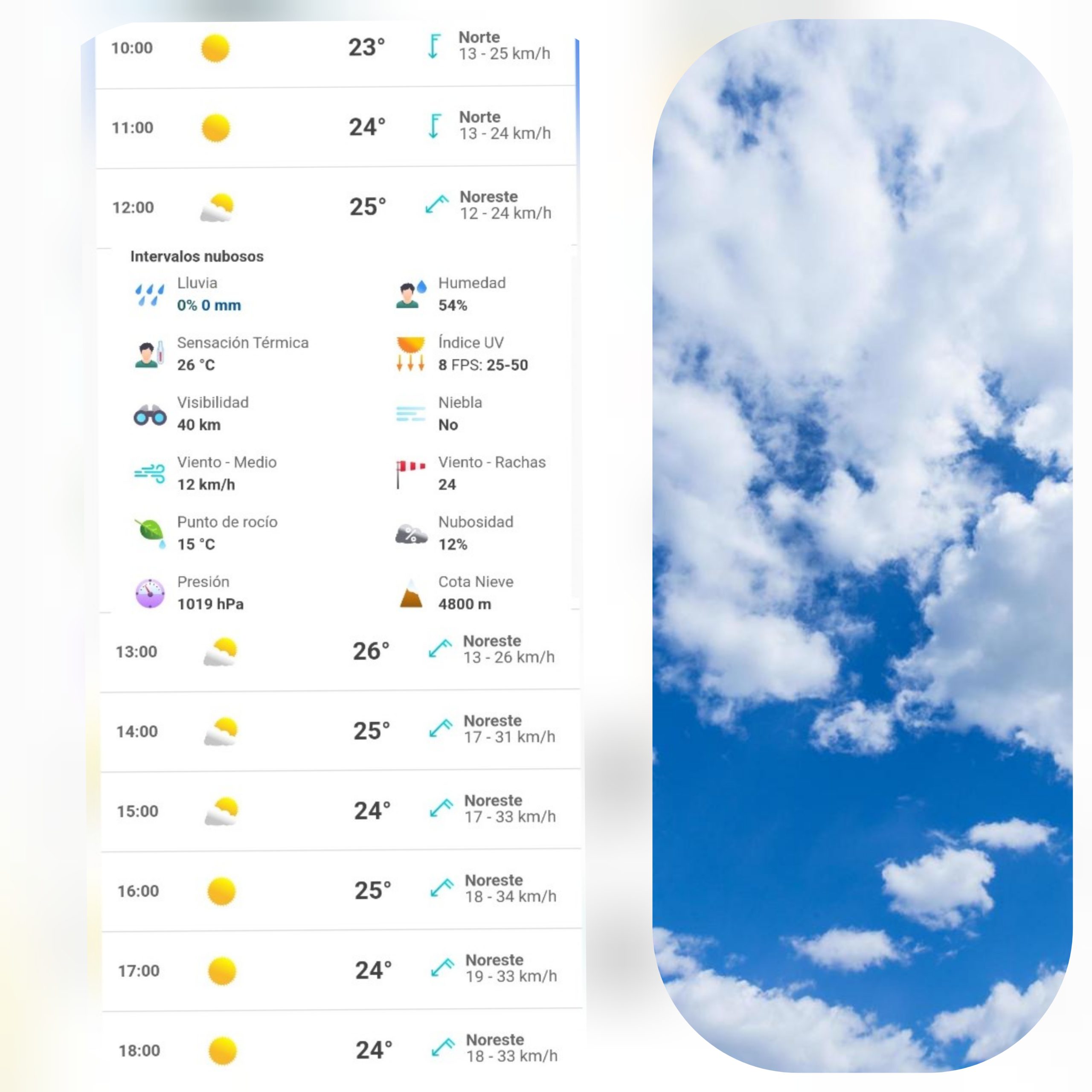 Será entre las 12 del día y las 2 de la tarde cuando el termómetro coloque las temperaturas más altas para este día, que oscilarán entre los 24 y 26°C.