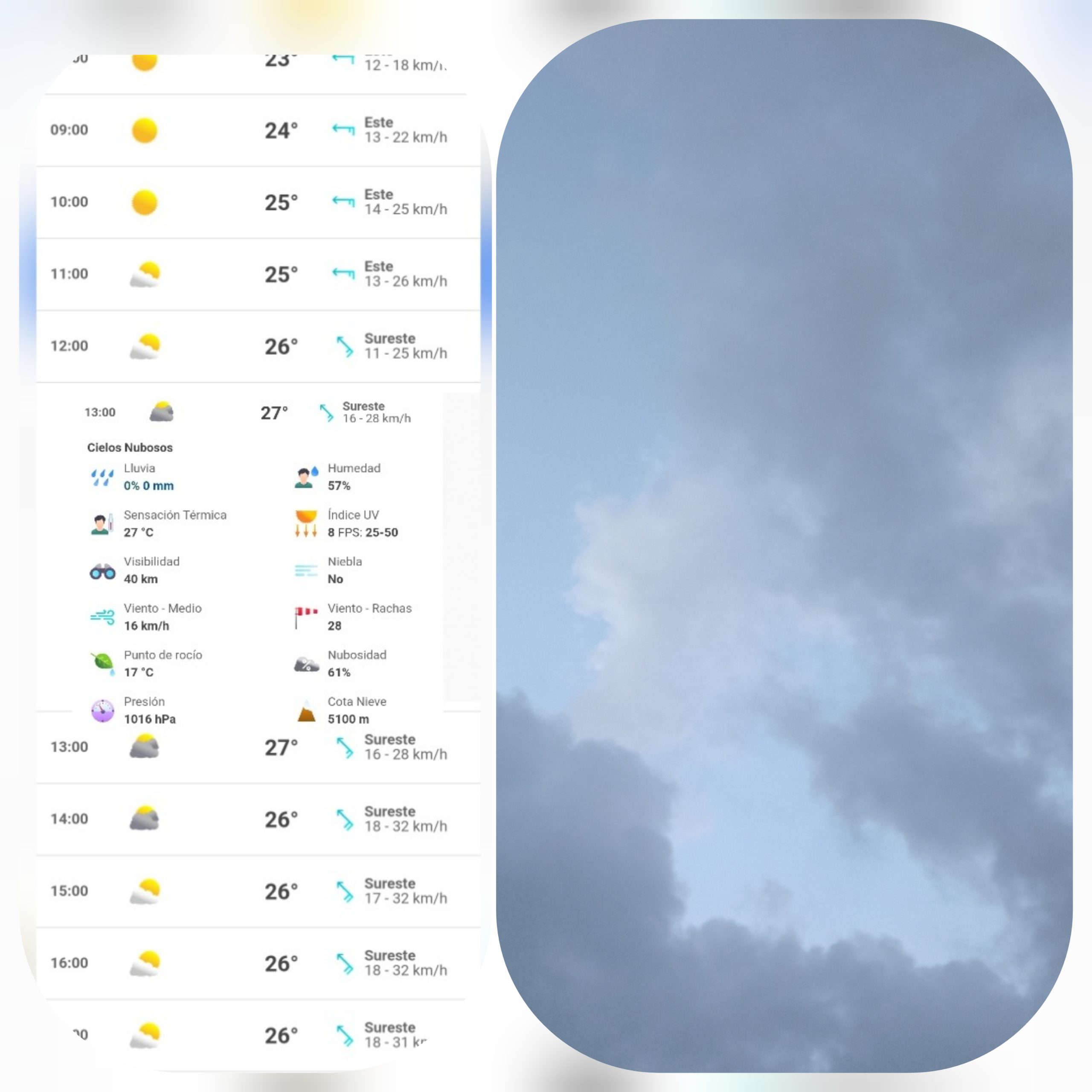 Así que habrá un cielo parcialmente nublado a medio nublado con probabilidad de lluvias aisladas.