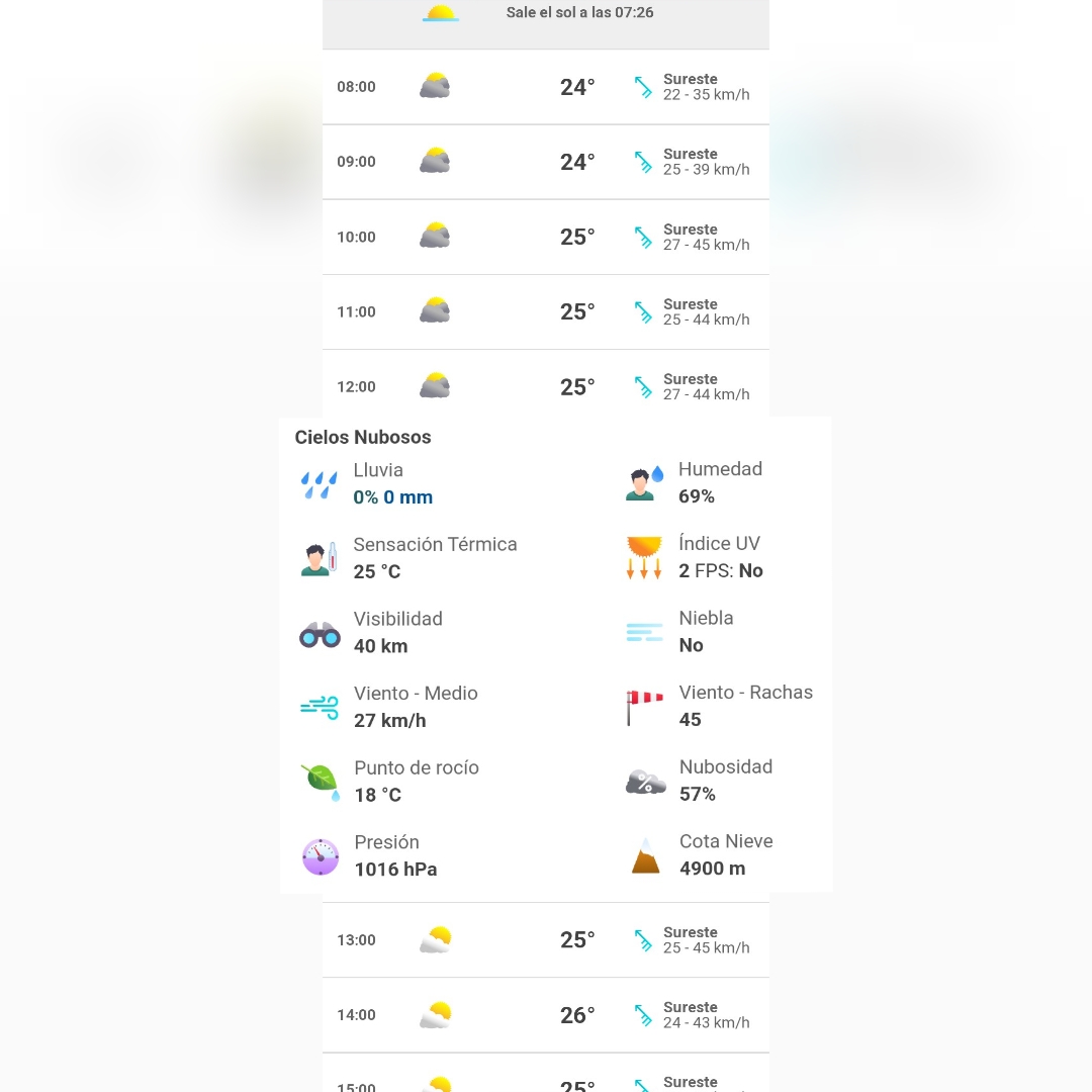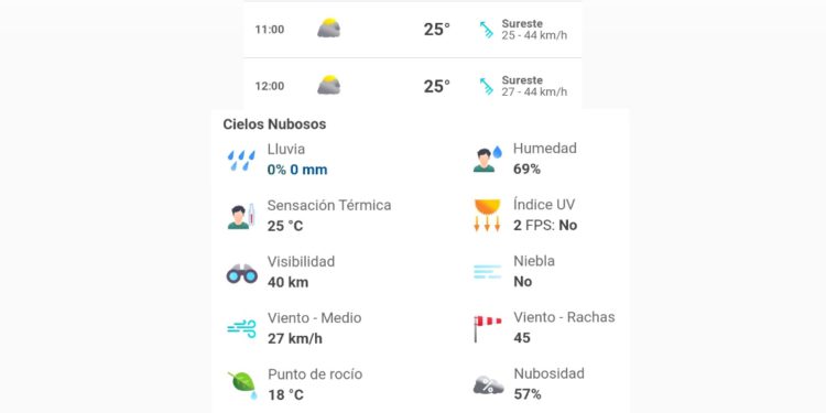 Así mismo, se espera ambiente templado por la mañana y cálido durante la tarde. Viento de componente sur (surada) de 10 a 25 km/h con rachas de 60 a 70 km/h, indicó el Servicio Meteorológico Nacional (SMN).