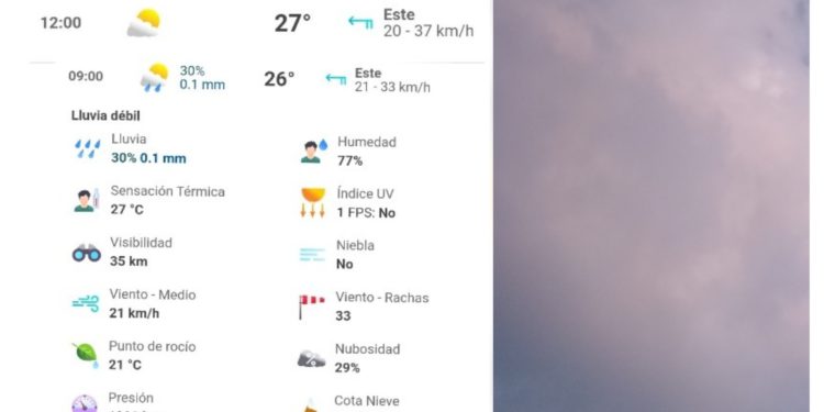 Habrá ambiente templado al amanecer y caluroso por la tarde. Viento del este de 10 a 25 km/h con rachas de 40 km/h.