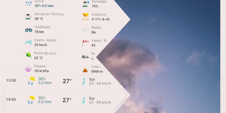En tanto, la temperatura será de 24 a 27°C, con probabilidades de lluvia de hasta 30% indicó el sitio especializado en el clima “Meteored”.