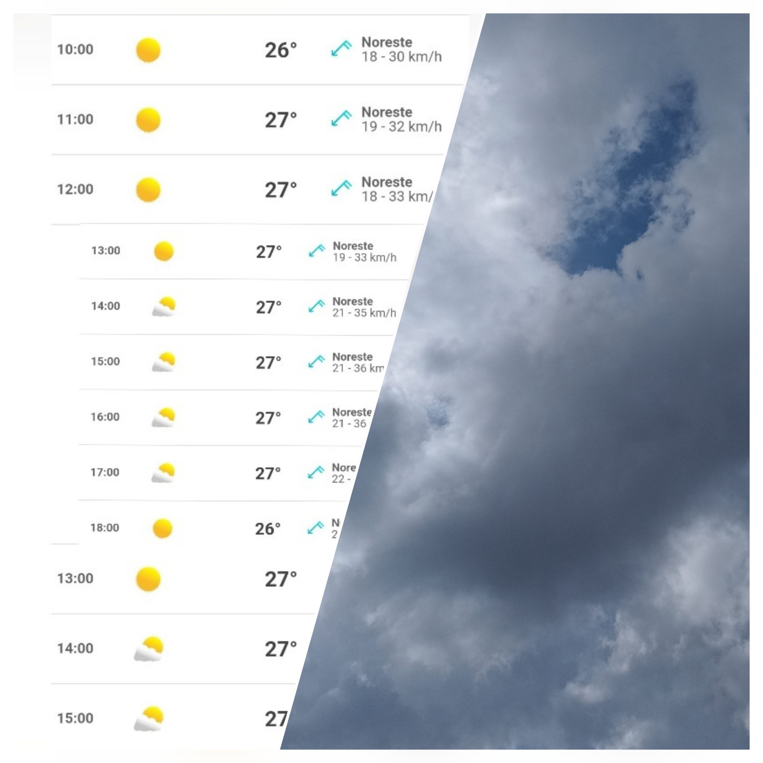 Hay probabilidad del 50% para las lluvias, y una temperatura mayormente entre 26 y 27°C.