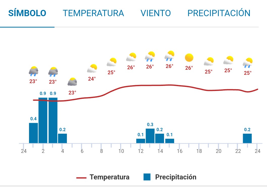 En tanto, la temperatura será de 24 a 26°C, con probabilidades de lluvia de hasta 30%, durante todo el día, indicó el sitio especializado en el clima “Meteored”.
