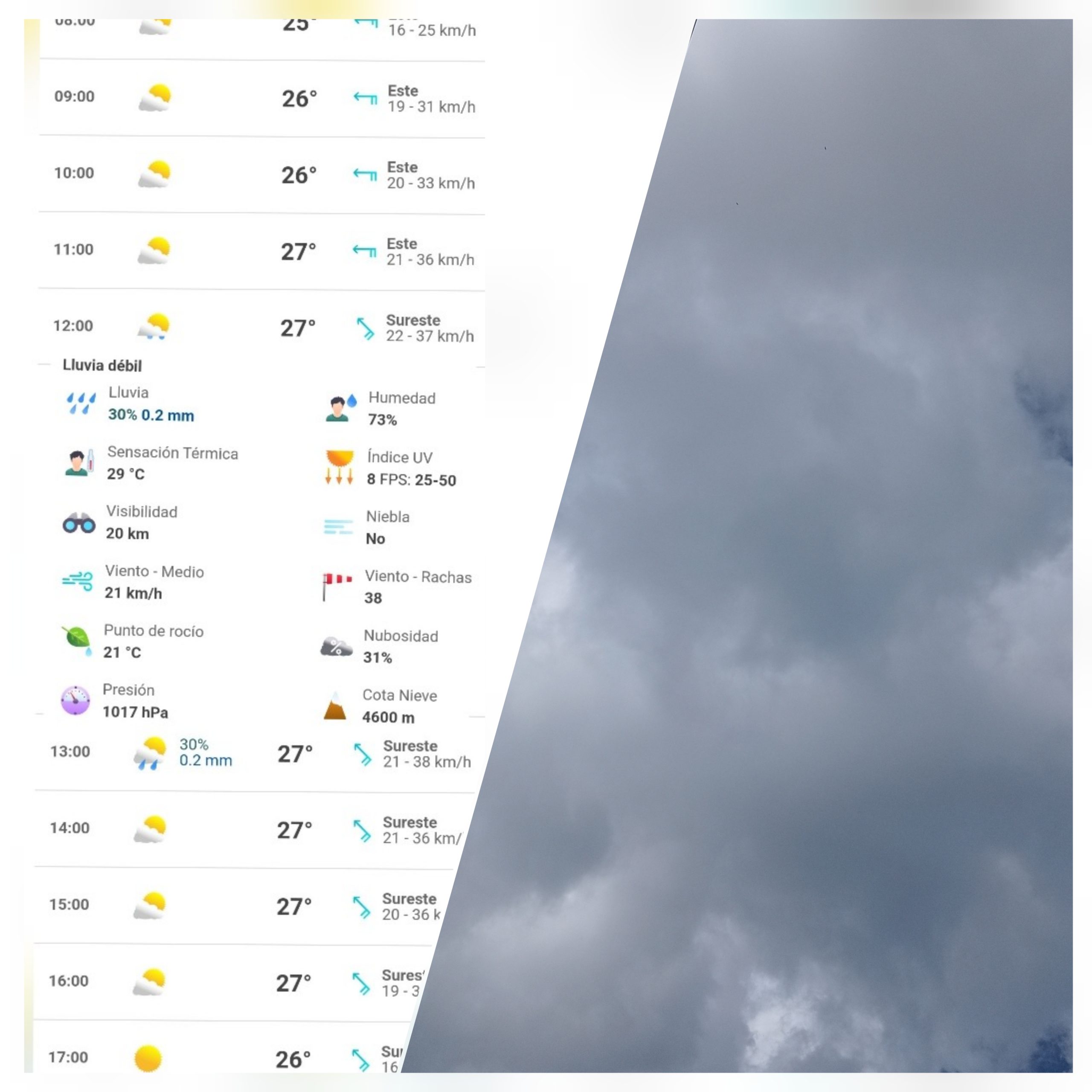 A detalle para Puerto Morelos se esperan intervalos nubosos con lluvias débiles para este viernes con un 30% de probabilidad. Las lluvias podrían presentarse pasadas las 13:00 hrs. (1 de la tarde).