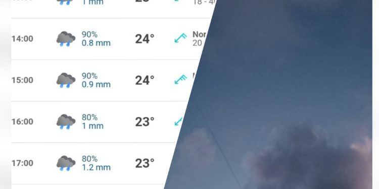 En tanto, la temperatura será de 23 a 26°C, con probabilidades de lluvia de hasta 90%, durante la tarde del viernes, indicó el sitio especializado en el clima “Meteored”.