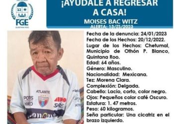 Moisés Bac Witz de 64 años fue visto por última vez por sus familiares el pasado 20 de diciembre de ...