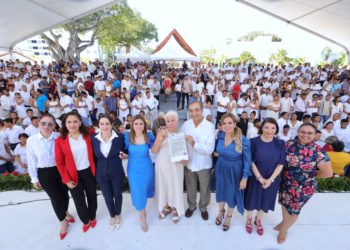 Con la presidenta municipal de Solidaridad, Lili Campos y la presidenta honoraria del DIF Solidaridad Rosita Escobedo Campos de testigos, ...