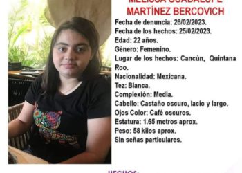 Melissa Guadalupe Martínez Bercovich de 22 años fue vista por última vez por sus familiares el pasado 25 de febrero ...