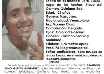 Brandon Yuno Guedes Rodríguez de 23 años fue visto por última vez por su familia el pasado 5 de enero ...